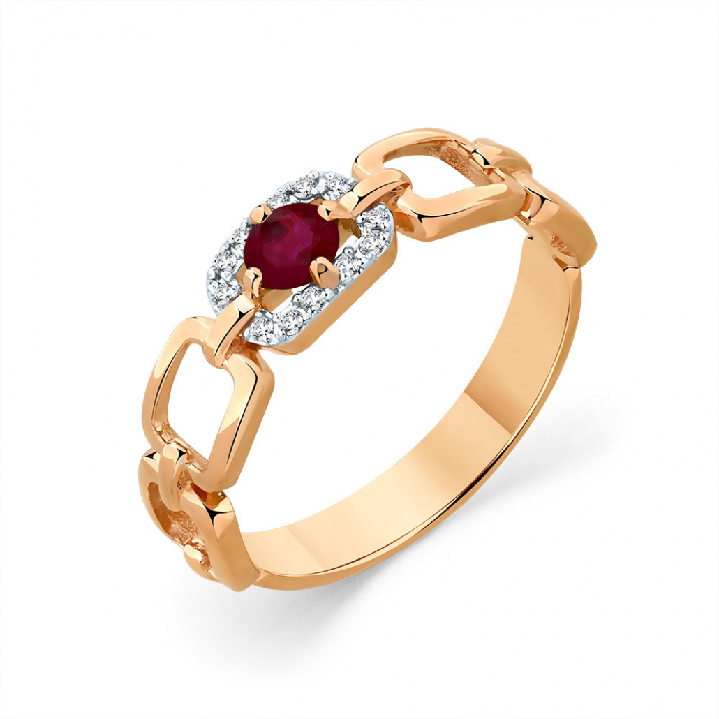 ОписаниеКольцо с бриллиантами из золотаартикул: 1-109058-00-031 Рубин н. Кр 4 0,329 2/2; 12 Бр Кр 57 0,048 3/5 А - Материал