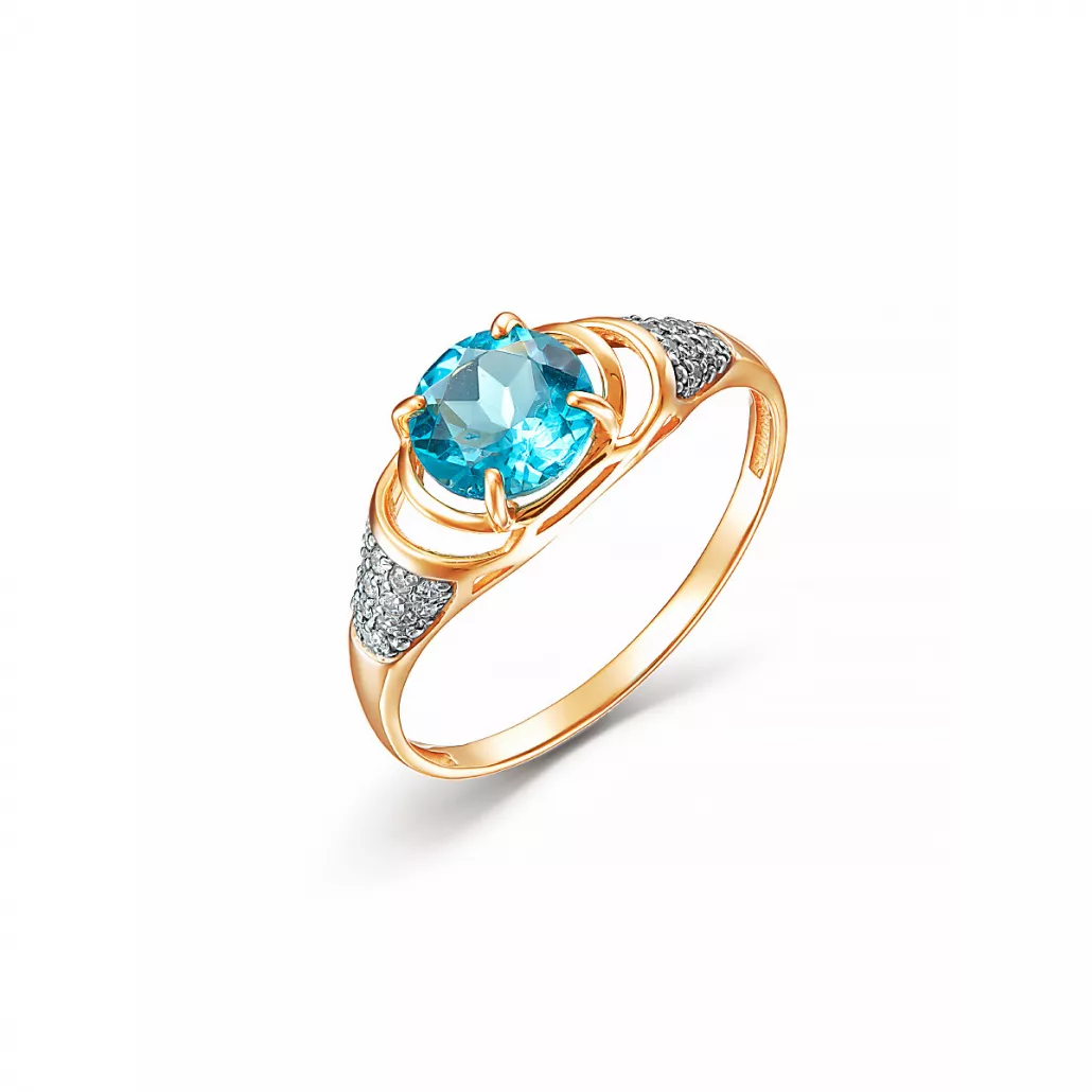 Кольцо с топазом и фианитом из золота