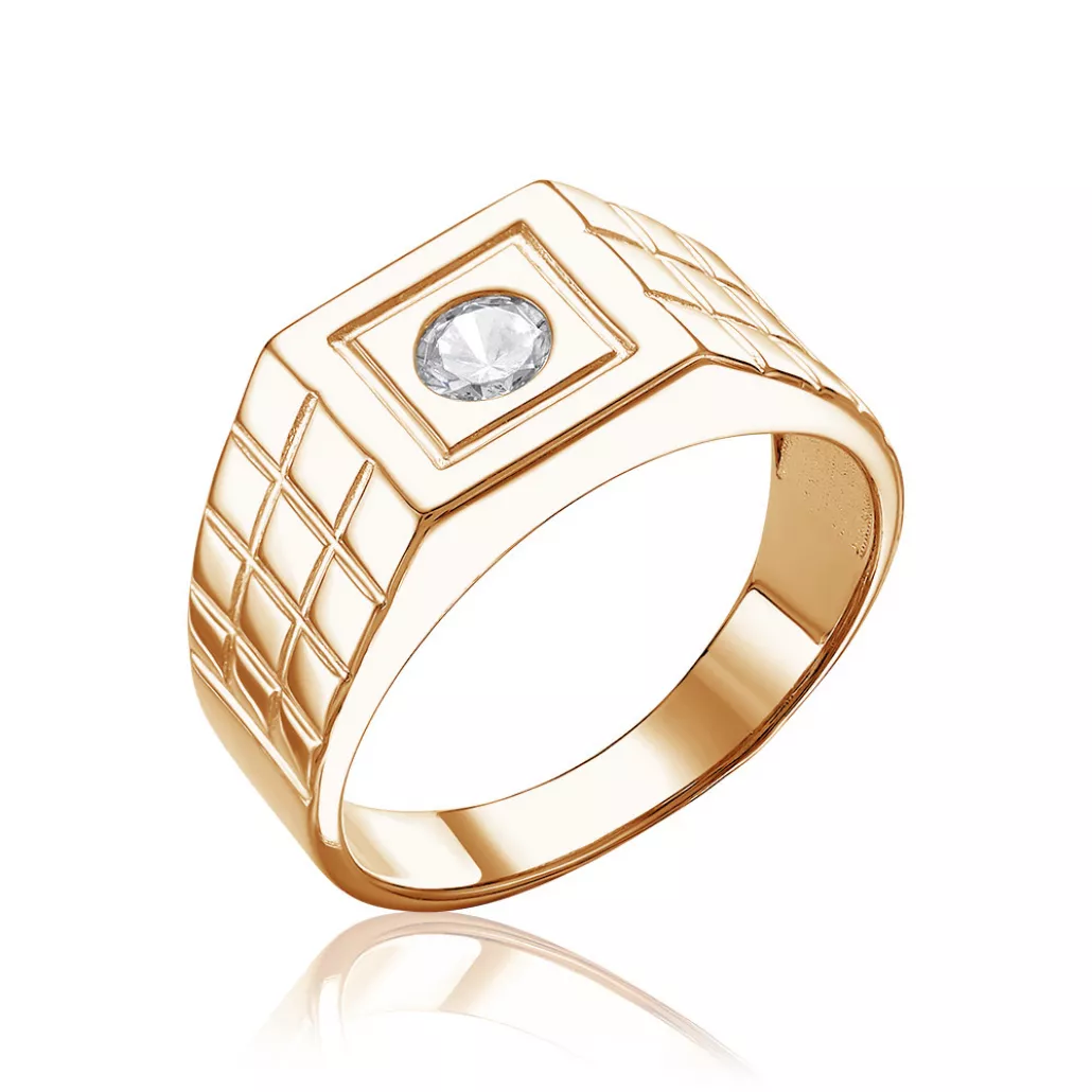 Кольцо-печатка с фианитом из золота