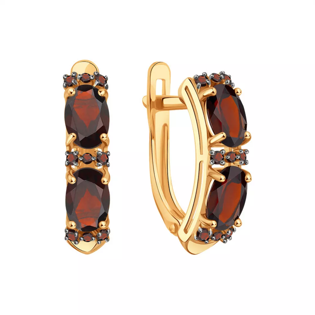 Серьги с гранатом и фианитом из золота