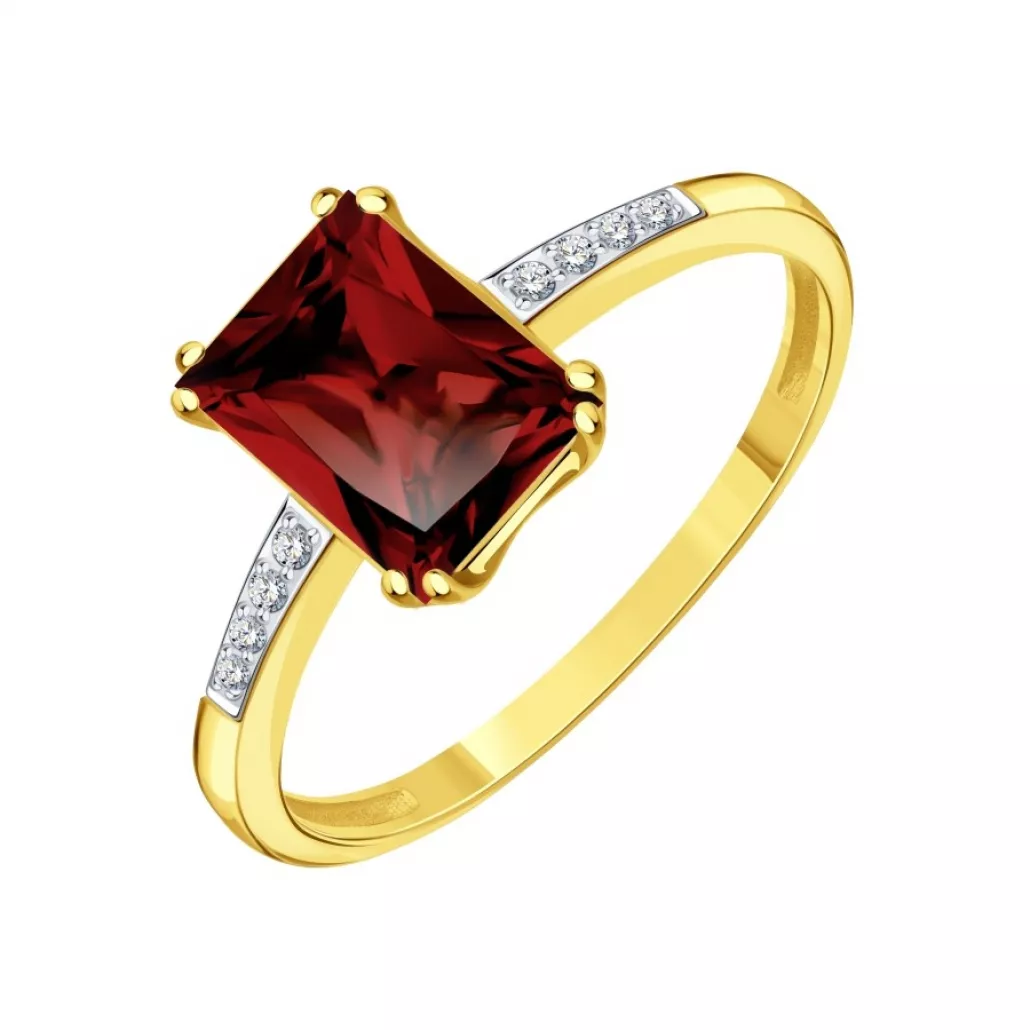 Кольцо с фианитом и гранатом из золота
